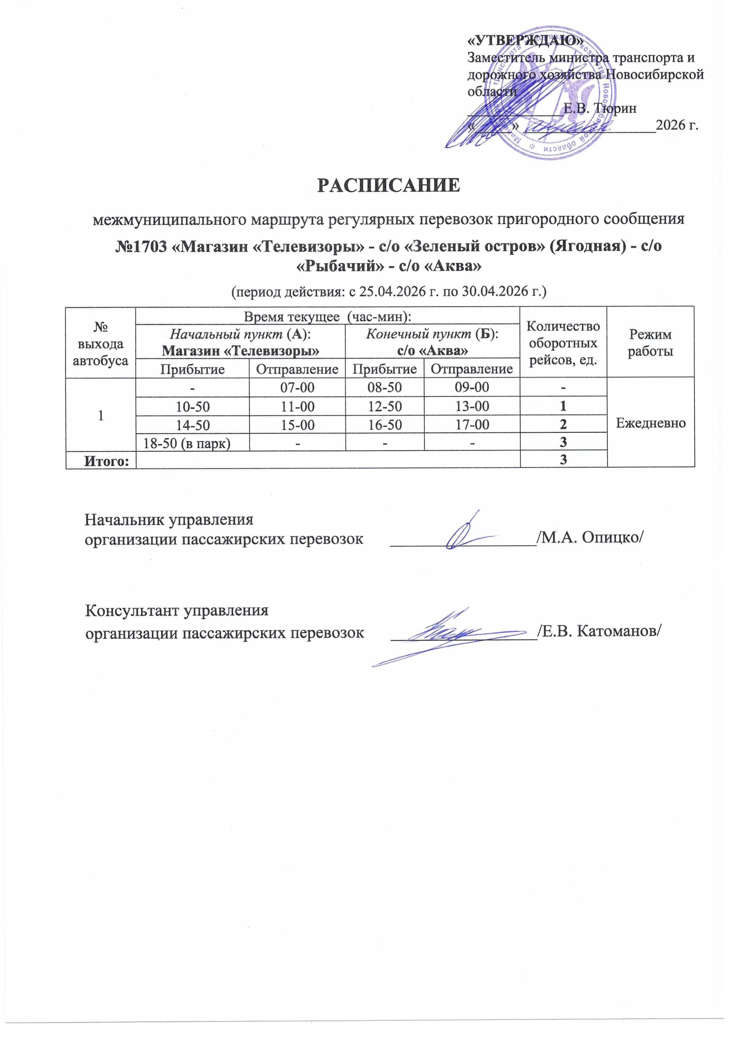 Расписание автобусов №1702 и №1703 с 24.04.2026г. по 30.04.2025г.